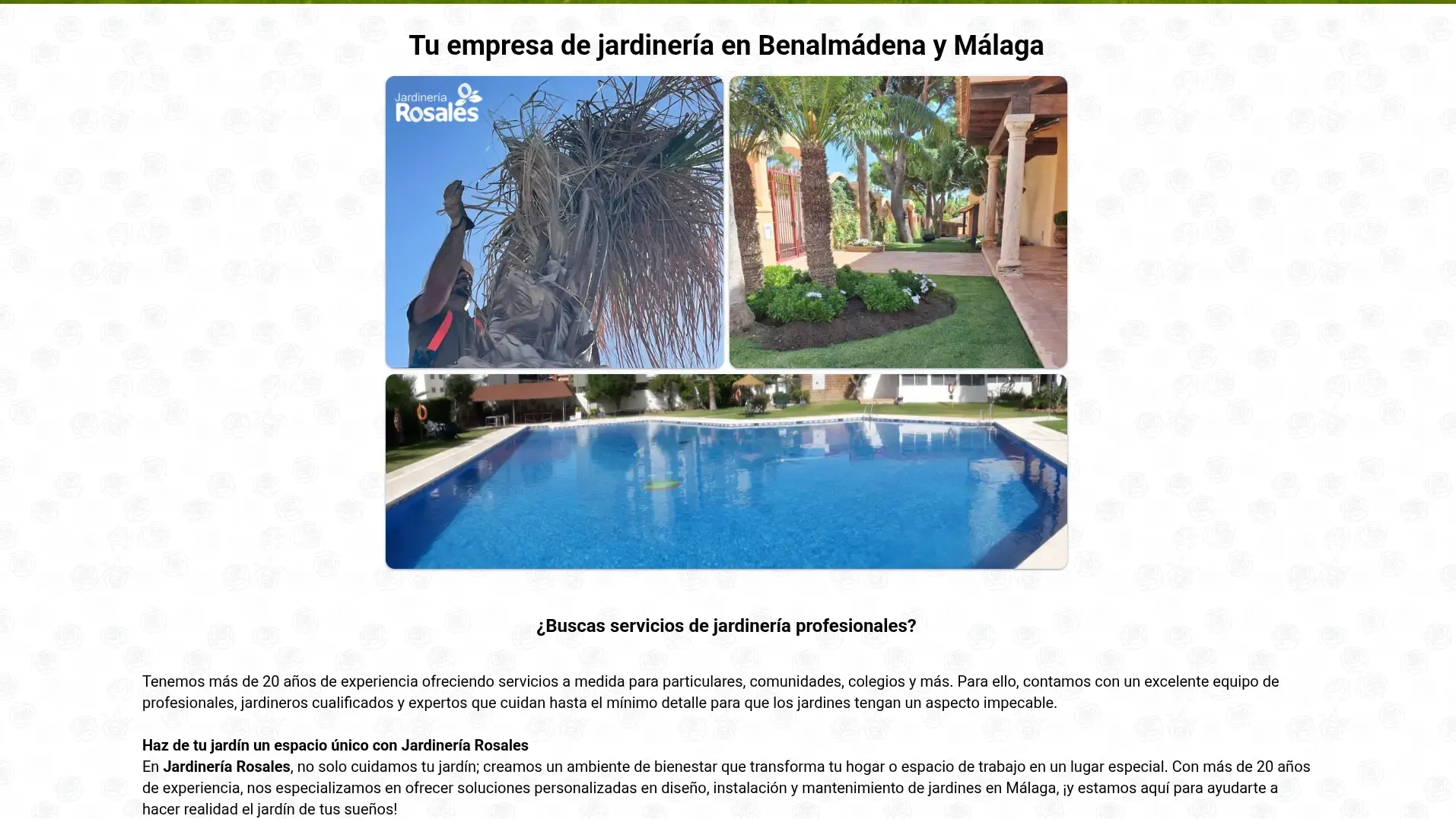 https://jardineriarosales.es/Sitio web de presentación con sistema de reservaciones para empresa de jardinería en Benalmádena