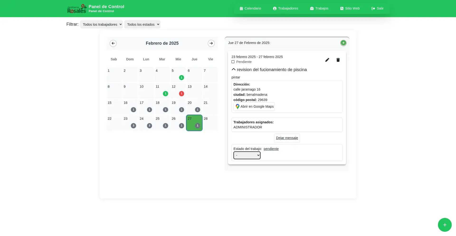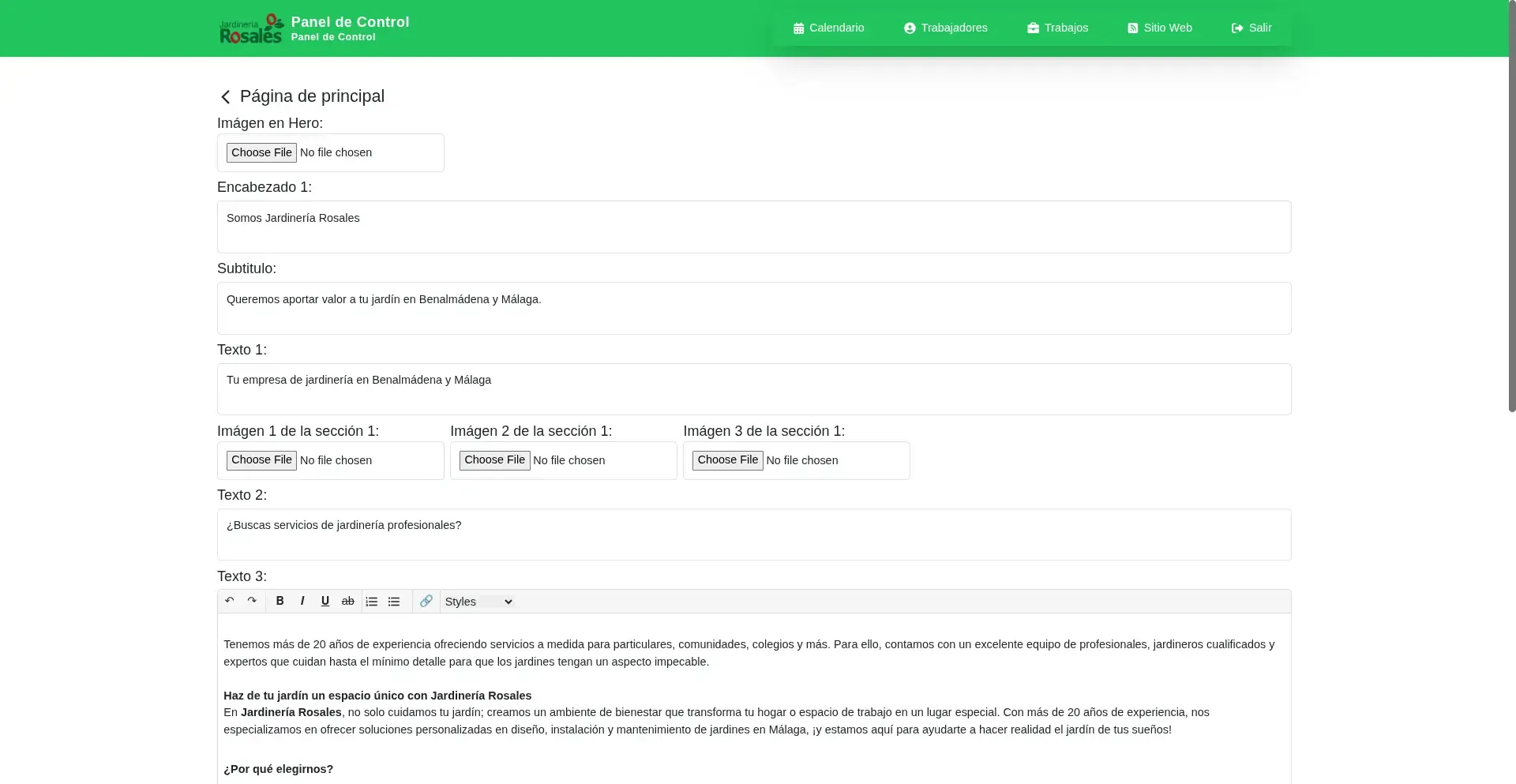 La empresa de jardinería Jardinería Rosales necesitaba tener un alcance mayor a su localidad, los clientes solían ser únicamente personas y empresas de Benalmádena. Adicionalmente necesitaban un sistema para agendar sus trabajos y asignarlos a sus trabajadores.